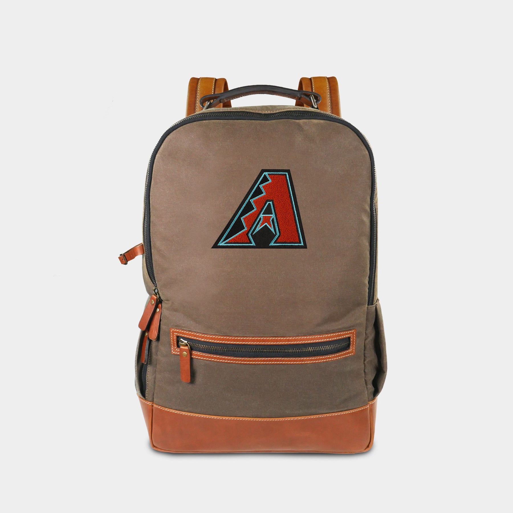 The Arizona Diamondbacks Waxed Canvas Backpack is likely the most stylish way to carry your items across campus or through the airport while showing your Diamondbacks pride. These beautiful and durable bags are made in the US with a water-resistant canvas exterior, refined leather handles and accents, and brass hardware and zippers. The perfect balance of form and function; design and durability. Made to last a lifetime.
