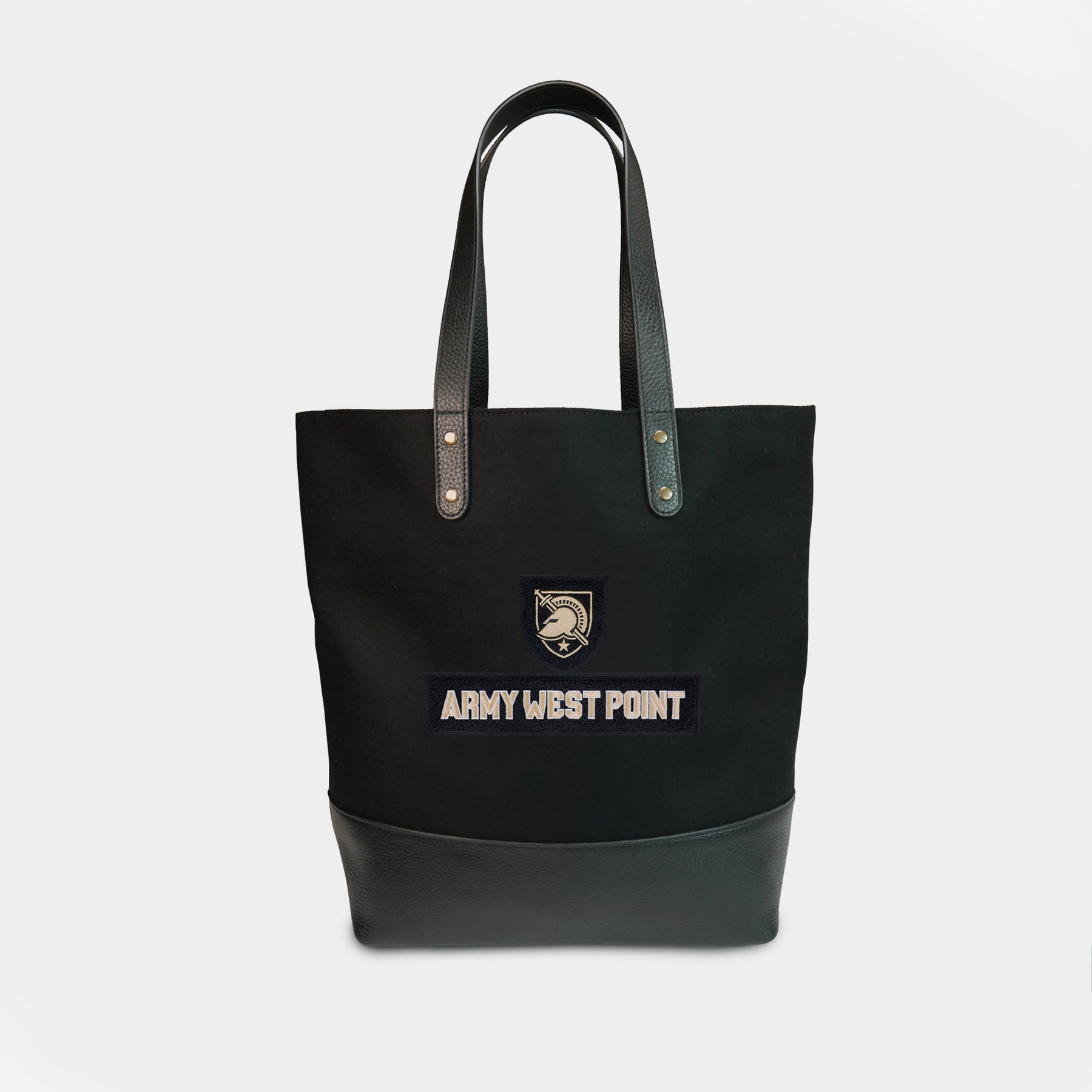Thoughtfully constructed with full-grain leather accents, double-lock stitching, and sturdy brass hardware, this tote delivers both strength and sophistication. The open-top woolen design offers easy access, while a zippered interior pocket keeps essentials secure. Finished with a soft twill cotton lining throughout, this versatile tote only gets better with time, making it the perfect everyday companion for loyal Army fans.
