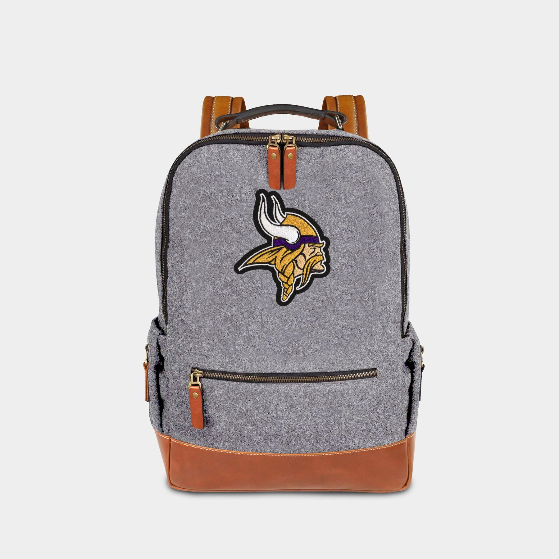 The Minnesota Vikings Woolen Backpack is likely the most stylish way to carry your items. It features sustainably harvested melton wool from one of the oldest mills in the United States and a high-quality chenille hand sewn patch. With its wool and full grain leather composition, double lock stitching, solid zippers and metals, Heritage Gear bags truly get better with time. This bag features both an interior and exterior zippered pocket and twill cotton lining throughout and is designed to last a lifetime.