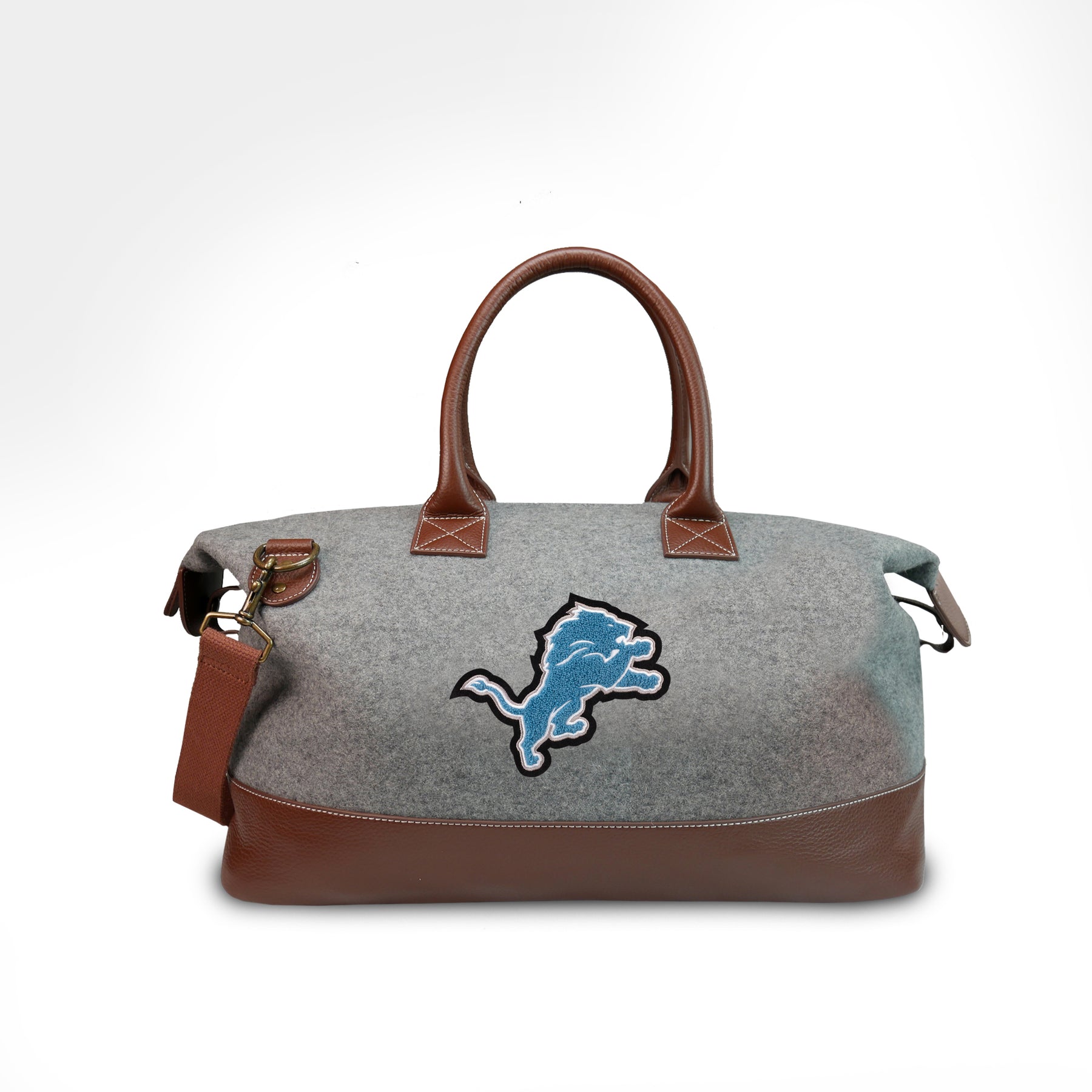 The Motor City is known for being the heartbeat of the American Auto Industry, Barry Gordy’s Motown, Bob Segar, Kid Rock & Ted Nugent. But its grit and grind is now evident in the Detroit Lions Football Team. In its Honolulu Blue and Silver uniforms, the turnaround is complete and to celebrate this historic franchise, we introduce the Lions Weekender Bag by Heritage Gear. Crafted sustainably to last a lifetime, the Heritage Gear Lions grey or black wool and full grain leather Weekender bag features double lock stitching, solid zippers and metals and a handsewn, classic Lions logo chenille patch. This bag includes both interior and exterior zippered pockets, twill cotton lining throughout and is perfect for a short trip, weekend getaway or for gifting the Lions fan in your life. And because it’s made by Heritage Gear, it only gets better with age.