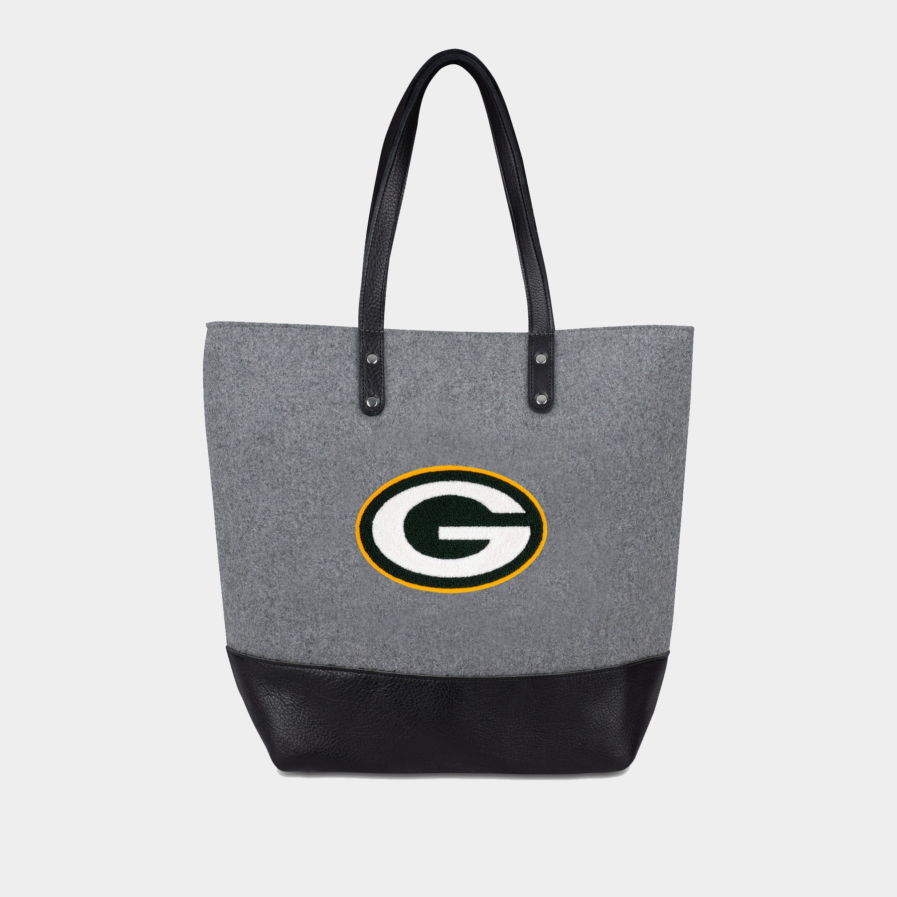 The Green Bay Packers "G" Tote features sustainable melton wool from one of the oldest mills in the country and a high-quality chenille patch on its side of the team's helmet logo created by a team equipment manager under legendary coach Vince Lombardi in 1961. From the full grain leather, to double lock stitching, to solid zippers and metals and classic chenille patches, Heritage Gear bags truly get better with time. This bag features a zippered interior pocket and twill cotton lining throughout.