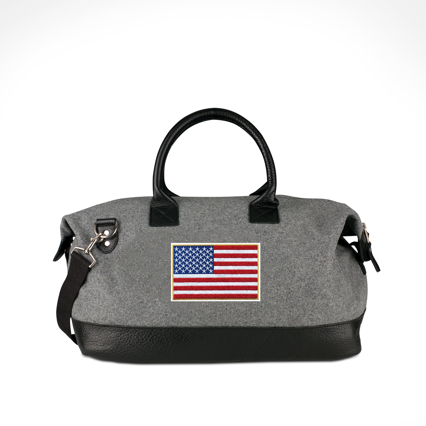 Celebrate America, still the greatest country on the planet with a bag that represents your pride and patriotism. Heritage Gear proudly brings you the US Flag Weekender Duffle Bag.  These beautiful and durable bags are made of made of sustainable melton wool and features a handsewn chenille US Flag patch. Crafted to last a lifetime, the US Flag Weekender has top-notch leather, double lock stitching with solid zippers and metals. This bag also features a zippered interior pocket, twill cotton lining throughout, and only gets better with time. Like Old Glory!