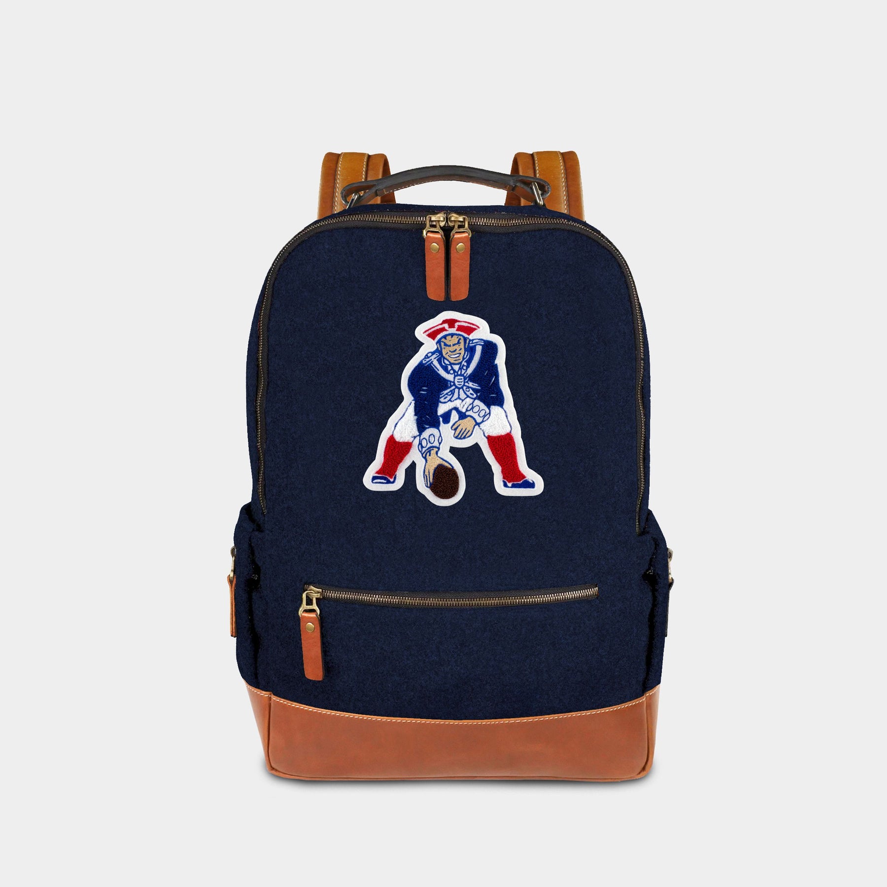 The New England Patriots "Pat Patriot" Woolen Backpack is likely the most stylish way to carry your items. It features sustainably harvested melton wool from one of the oldest mills in the United States and a high-quality chenille hand sewn patch. With its wool and full grain leather composition, double lock stitching, solid zippers and metals, Heritage Gear bags truly get better with time. This bag features both an interior and exterior zippered pocket and twill cotton lining throughout and is designed to last a lifetime.