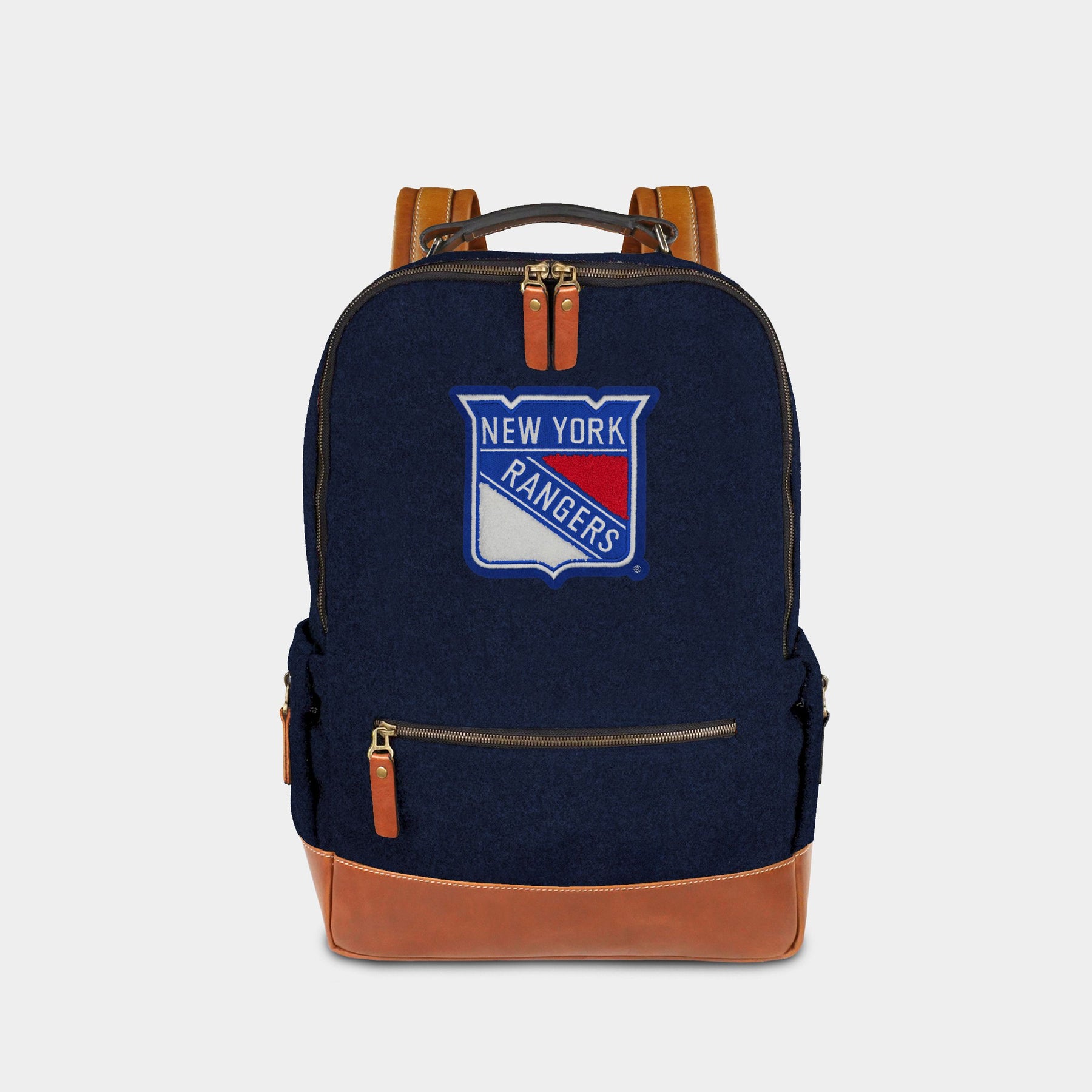 The New York Rangers Woolen Backpack is likely the most stylish way to carry your items. It features sustainably harvested melton wool from one of the oldest mills in the United States and a high-quality chenille hand sewn patch. With its wool and full grain leather composition, double lock stitching, solid zippers and metals, Heritage Gear bags truly get better with time. This bag features both an interior and exterior zippered pocket and twill cotton lining throughout and is designed to last a lifetime.