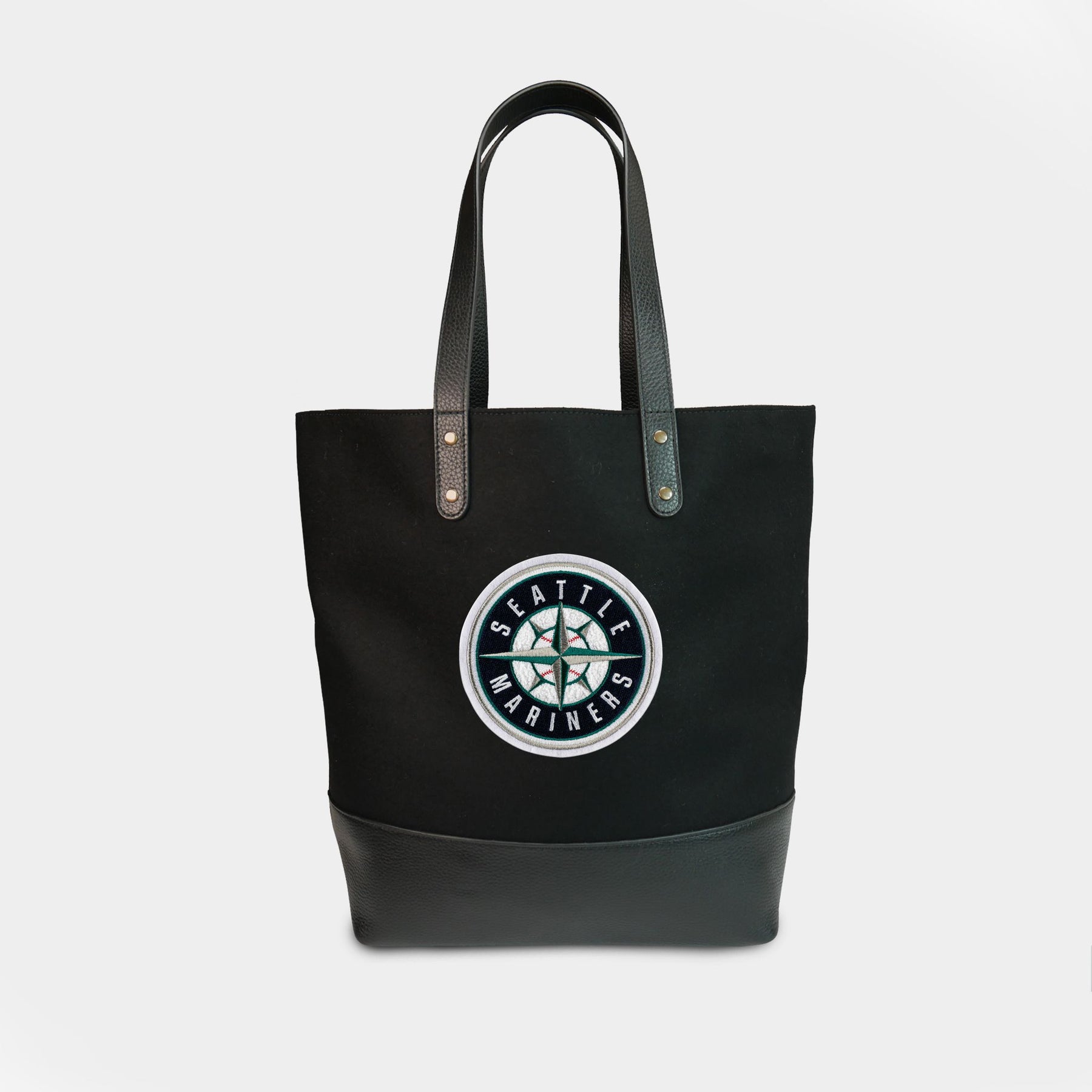 The Seattle Mariners Baseball Club originally occupied the friendly confines of the Kingdome in downtown Seattle. And while many great players have come and gone, the three most noteworthy were Ken Griffey Jr., Ichiro and Alex Rodriquez with Jay Buhner and Randy Johnson close behind. Heritage Gear is proud to build a product for a team like the Mariners with their distinctive primary club logo in blue and green chenille handsewn on navy wool. The Mariners Tote Bag is made of sustainable melton wool from one of the oldest mills in the USA and has full-grain leather, double lock stitching, and brass metals. This bag features a zippered interior pocket, twill cotton lining throughout, and only gets better with time.