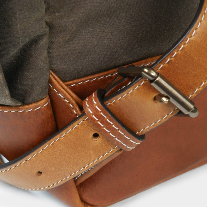 - Premium Waxed Canvas - Full Grain American Leather Trim