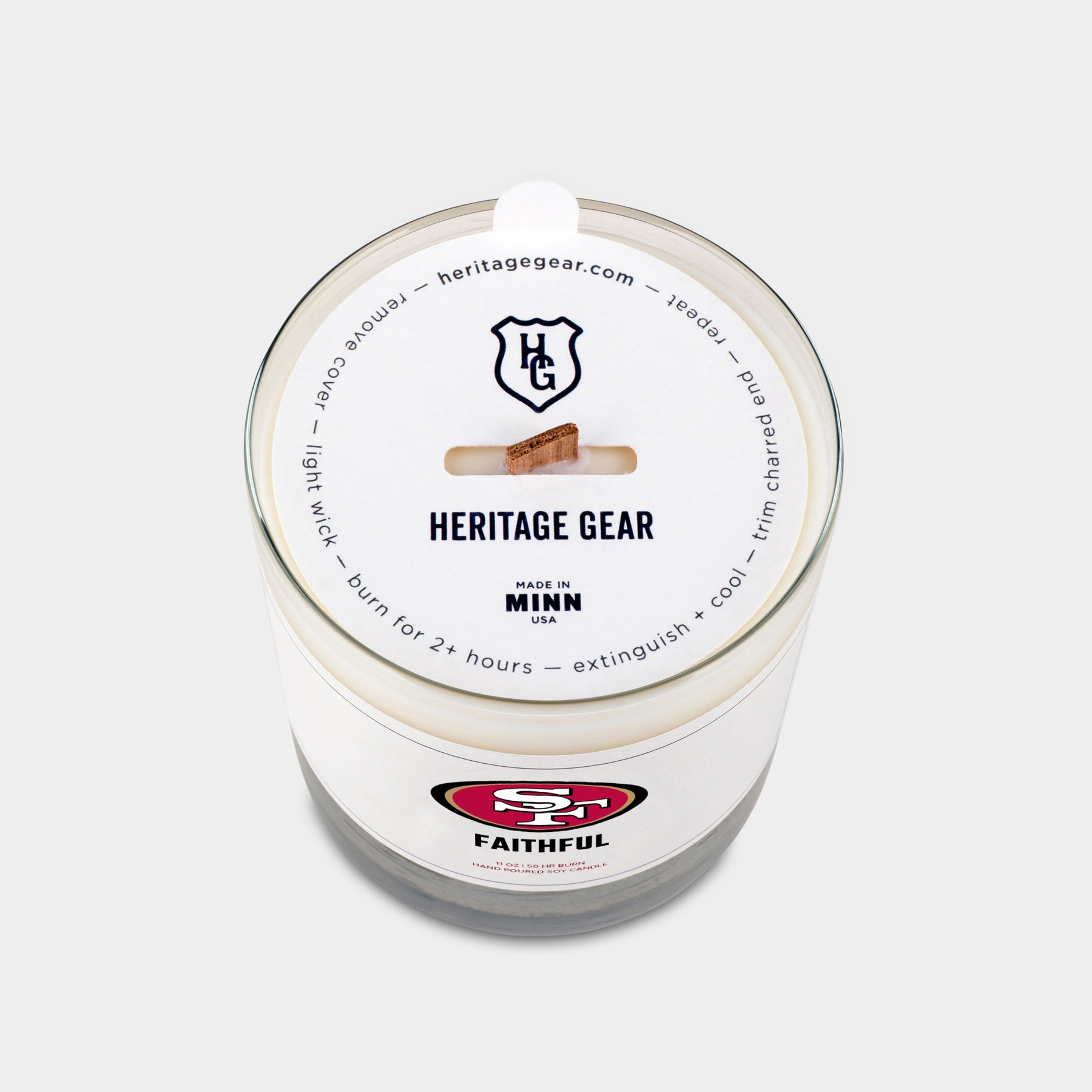 Light this candle to bring the strength and tradition of 49ers Nation into your space.
