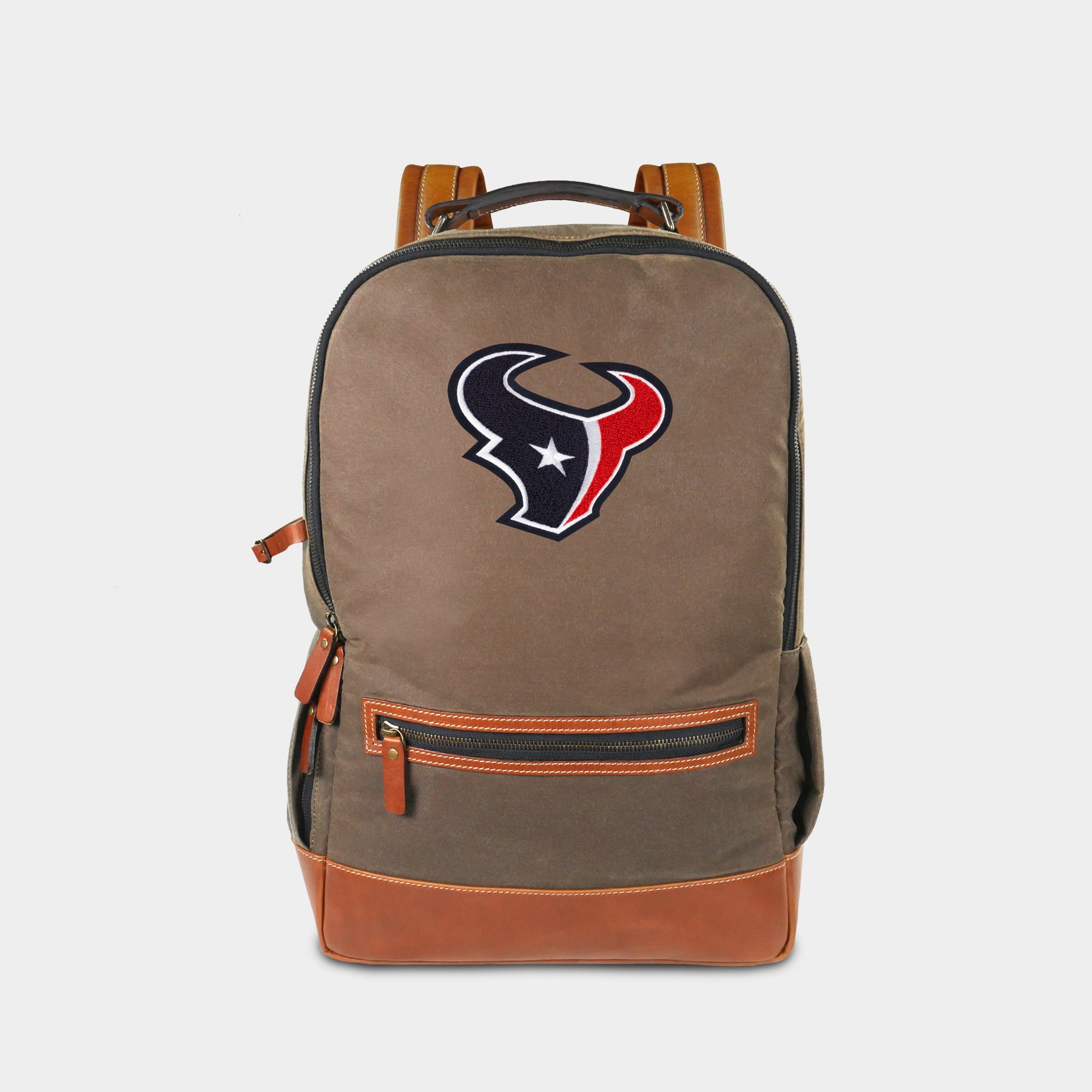 The Houston Texans Waxed Canvas Backpack is likely the most stylish way to carry your items across campus or through the airport while showing your Texans pride. These beautiful and durable bags are made in the US with a water-resistant canvas exterior, refined leather handles and accents, and brass hardware and zippers. The perfect balance of form and function; design and durability. Made to last a lifetime.