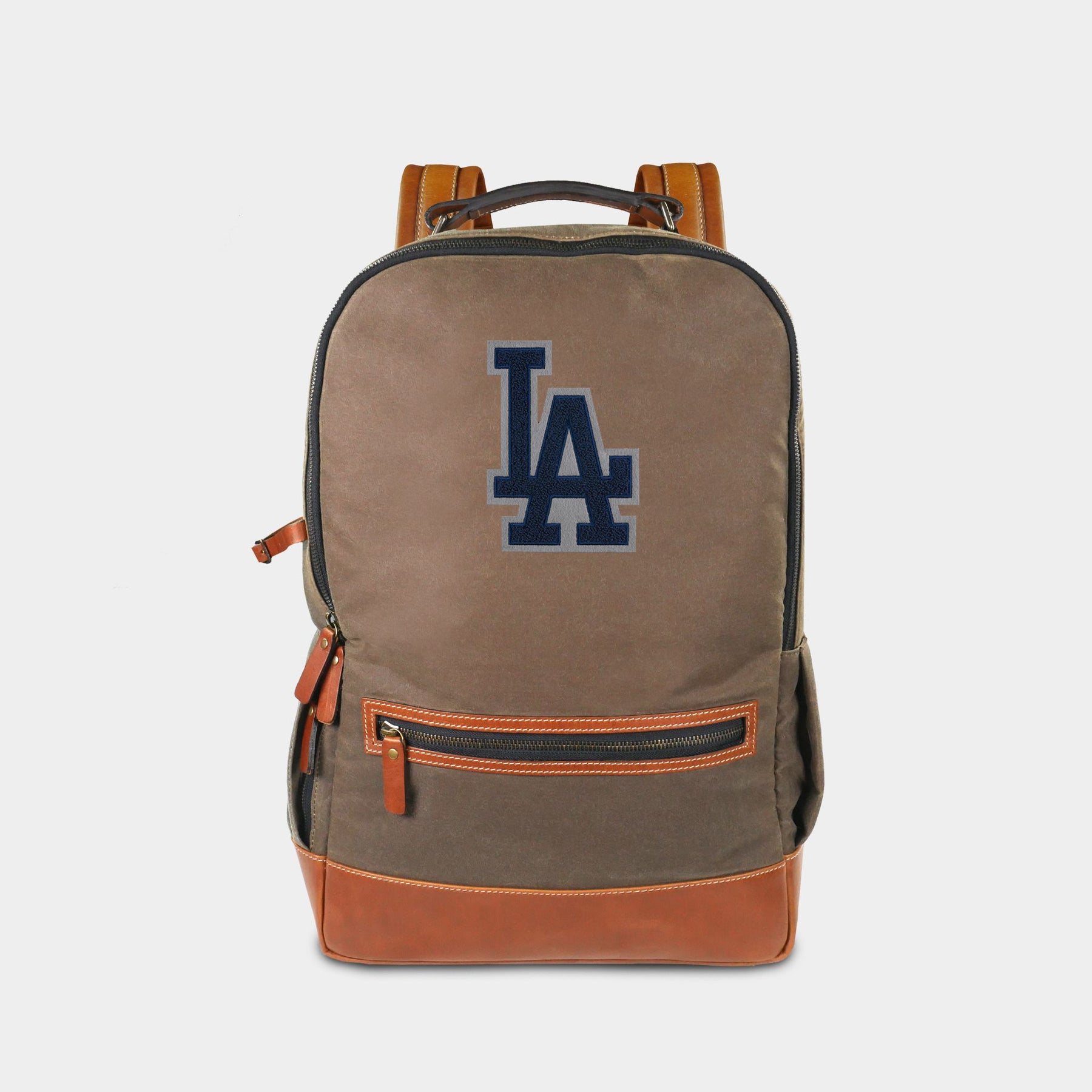 The Los Angeles Dodgers Waxed Canvas Backpack is likely the most stylish way to carry your items across campus or through the airport while showing your Dodgers pride. These beautiful and durable bags are made in the US with a water-resistant canvas exterior, refined leather handles and accents, and brass hardware and zippers. The perfect balance of form and function; design and durability. Made to last a lifetime.