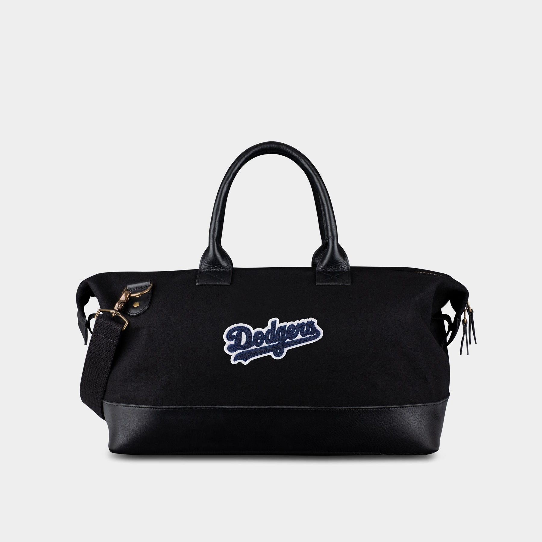 One of the iconic global brands in any sport, the Dodgers have been and continue to be a team for the ages. From Ebbets Field to Dodger Stadium. PeeWee Reese to Jackie Robinson, Sandy Koufax and Don Drysdale to Mookie Betts, Freddy Freeman and Ohtani, the Dodgers are a collection of legends. The Dodgers “Script” Weekender is made of sustainable melton wool from one of the oldest mills in the USA and features the Dodger “Script” logo in blue chenille handsewn on Dodger Blue wool. Crafted to last a lifetime, the Dodger “Script” Weekender has full-grain leather, double lock stitching, solid zippers and metals. It’s perfect for travel, spontaneous weekend adventures, and as a gift for the die-hard Dodger fan in your life. This bag features a zippered interior pocket, twill cotton lining throughout, and only gets better with time.