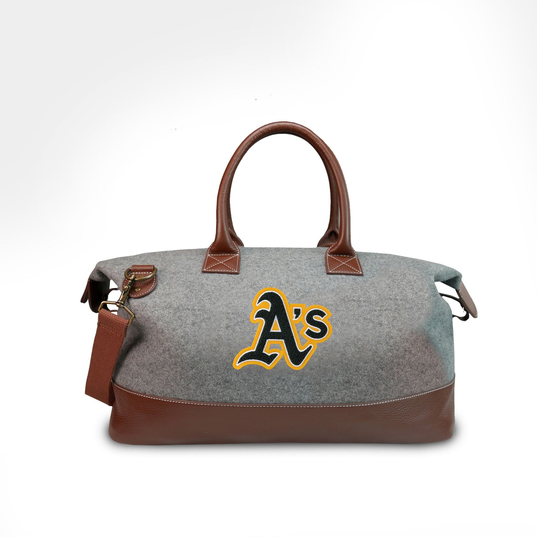 The A’s of Charley Finlay represented a collection of some of the greatest who have played the game. Vida Blue, Blue Moon Odom, Catfish Hunter, Campy Campanaris were not only great players but had great names! And the “A’s” Weekender from Heritage Gear captures the colorful uniforms and players that are the A’s. The “A’s” Weekender is made of sustainable melton wool from one of the oldest mills in the USA and features the Oakland “A’s” logo in gold and green chenille handsewn on green wool. Crafted to last a lifetime, the “A’s” Weekender has full-grain leather, double lock stitching, solid zippers and metals. It’s perfect for travel, spontaneous weekend adventures, and as a gift for the die-hard Oakland baseball fan in your life. This bag features a zippered interior pocket, twill cotton lining throughout, and only gets better with time.