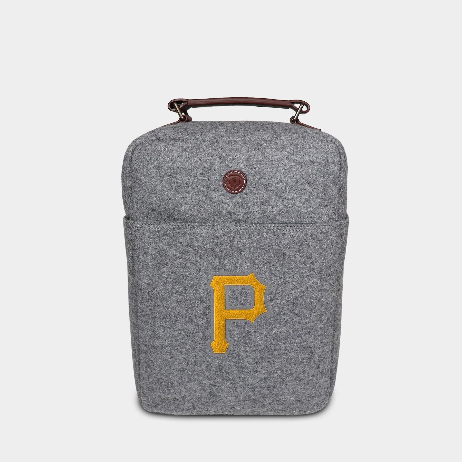 Get ready to hit the road with your favorite pair of golf shoes or sneakers while showing off your Pittsburgh Pirates pride with a high end chenille patch sewn on the front. Our woolen structured shoe bag features a heavy duty leather handle and zippered closures. Carry your shoes in style with this hand stitched premium wool bag made to last a lifetime. Made with an easy to clean antimicrobial liner you never have to worry about keeping your bag clean. The interior pocket is constructed of cotton nylon materials to protect anything you are looking to store.
