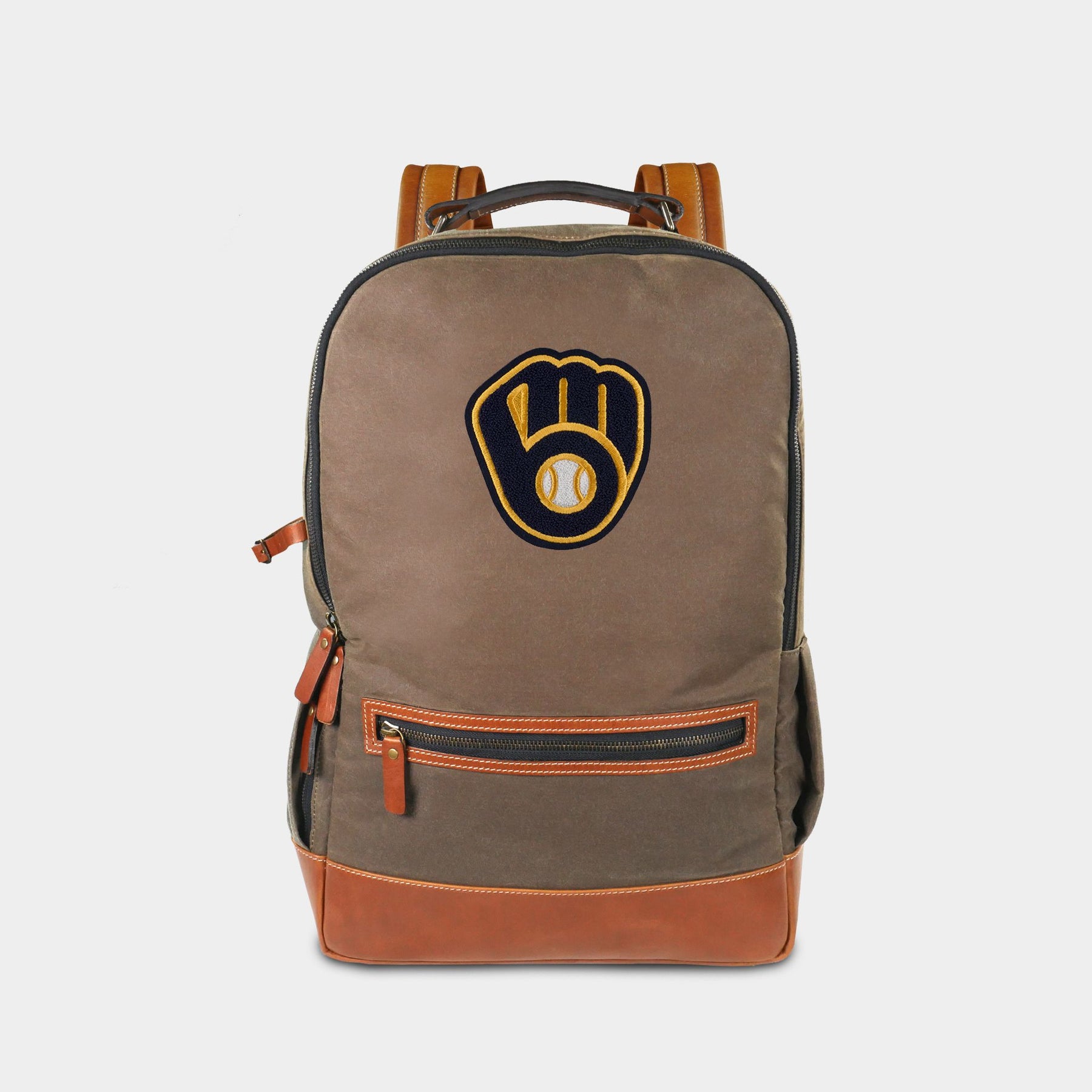 The Milwaukee Brewers Pro Waxed Canvas Backpack is the most stylish way to carry your essentials across campus, to the office, or on the go while showing off your Brewers pride. Crafted in the USA, this durable backpack features a water-resistant waxed canvas exterior, refined leather handles and accents, and brass hardware and zippers. It offers the perfect balance of form and function, combining design and durability, and is built to last a lifetime.