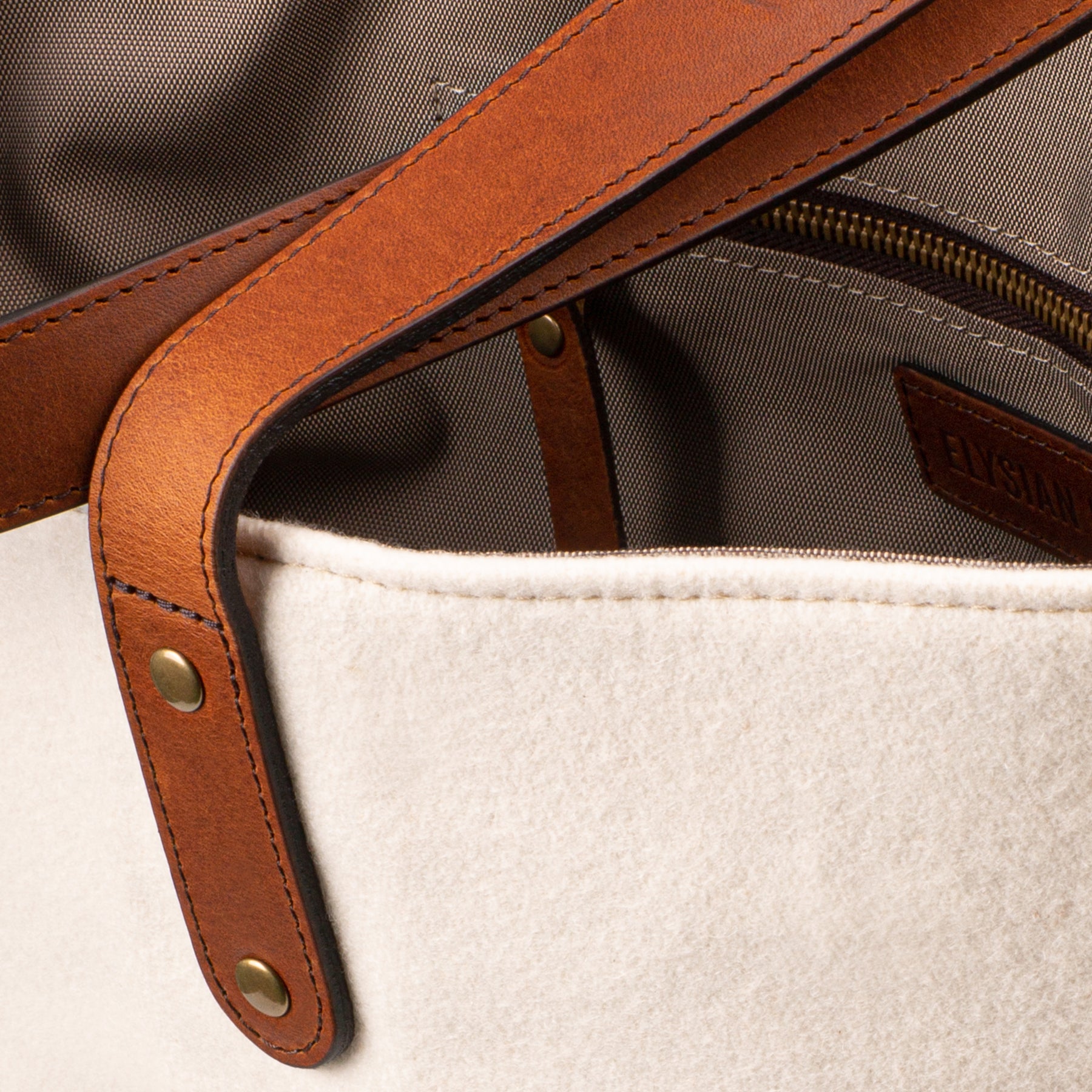 The New York Yankees Cream Tote with the iconic logo is made with sustainable, premium melton wool. The classic Yankees logo silhouette has been crafted on a high-quality chenille patch and handsewn to the bag. From the full grain tan leather, to double lock stitching, with solid zippers and metals, the New York Yankees Tote by Heritage Gear will only get better with time. This open-top, unfastened woolen tote bag features a zippered interior pocket, twill cotton lining throughout.