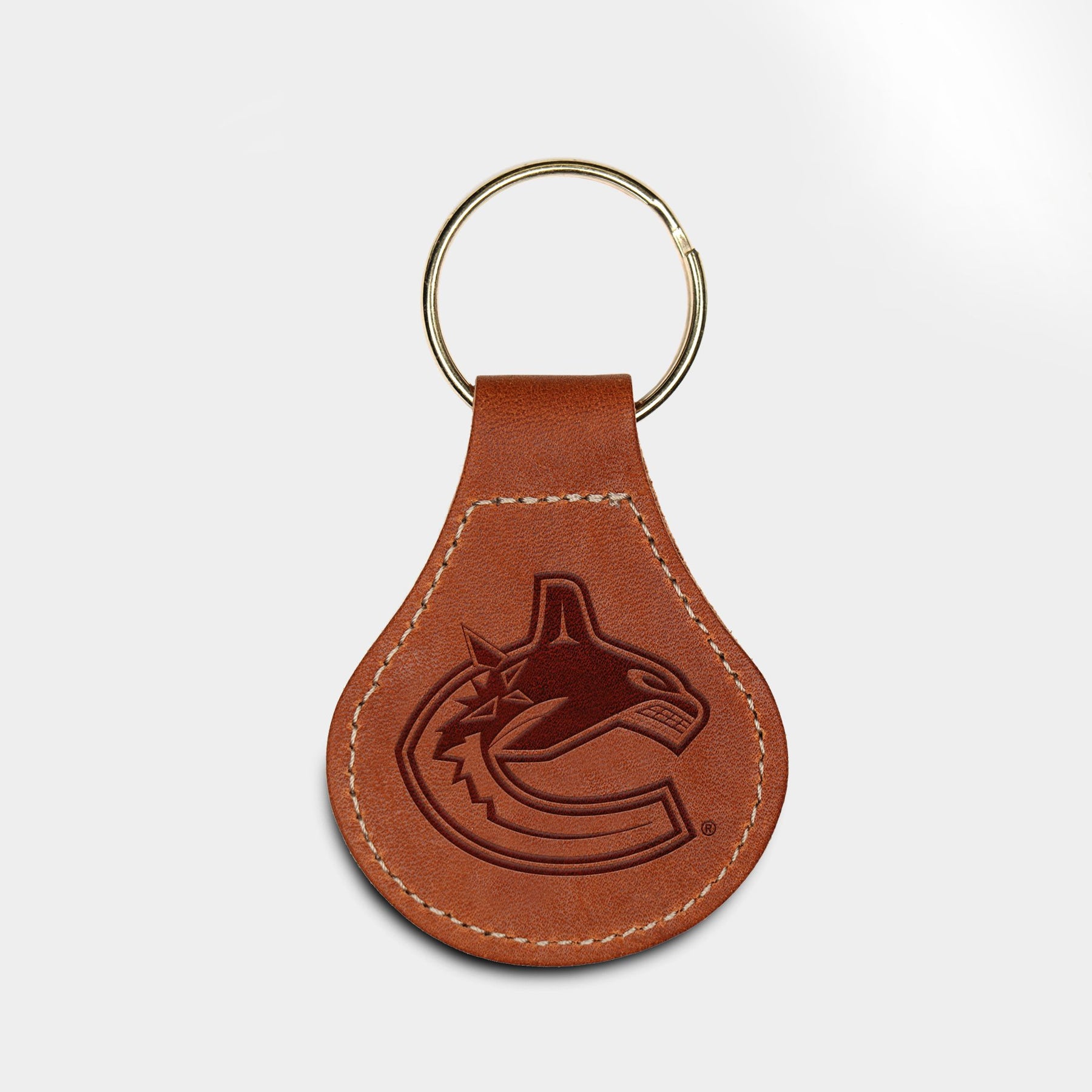 The Vancouver Canucks Leather Key Fob is made of premium, full grain leather and hand-stamped with your logo in our Minnesota facility. Perfectly sized to fit in your pocket or bag with a brass key ring that won't bend, this piece will only get better with age and use. Made in the USA and a perfect item for gifting to a fan, alum or someone who just appreciates a simple, quality item of utility they would be proud to carry.