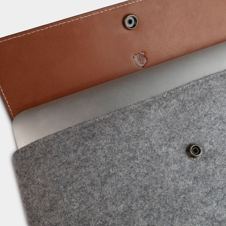 Brand new from Heritage Gear, our beautiful melton wool and leather trim Laptop and Documents Holder can serve either purpose depending on your need. Made of sustainable wool harvested with integrity and saddle leather trim on both the flap and corners, this piece is as sturdy as it is beautiful. The leather flap has a brass snap closure and is padded and lined in a sturdy color coordinated cotton twill to protect your laptop or any items inside. And with the Philadelphia Flyers vintage chenille patch hand sewn to the cover, you can display your Philadelphia Flyers pride with class. Sized to fit any laptop and to fit comfortably inside a backpack, duffel bag or piece of luggage, the Laptop and Document Holder from Heritage Gear will go wherever you go in style and will likely last you through multiple laptop purchases.