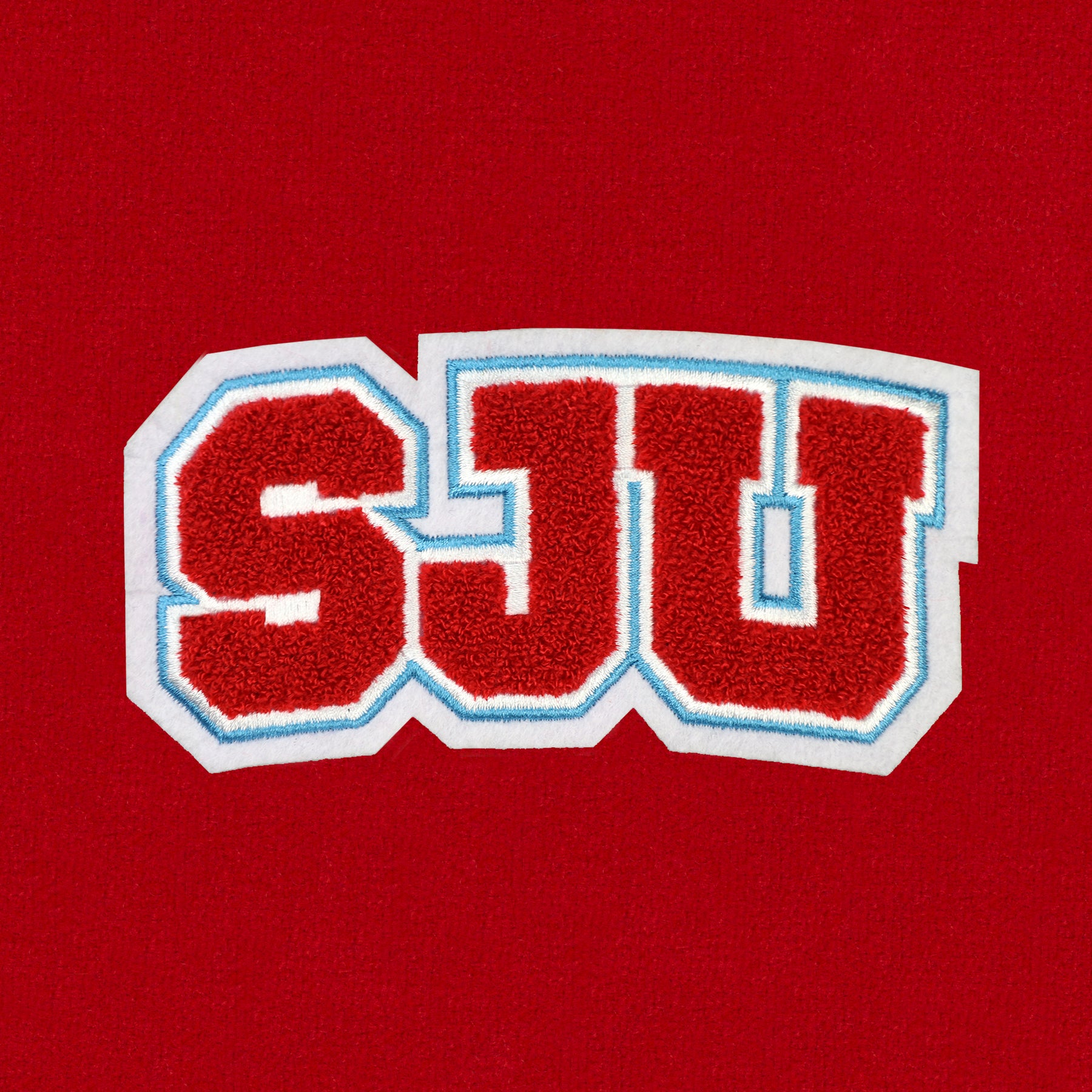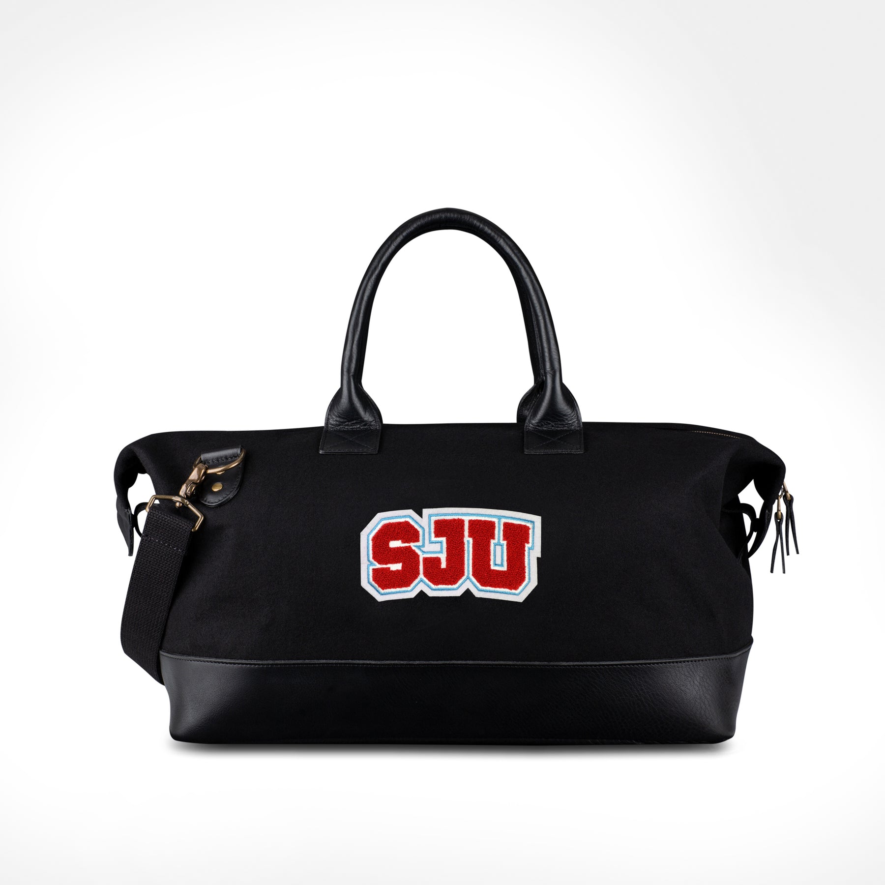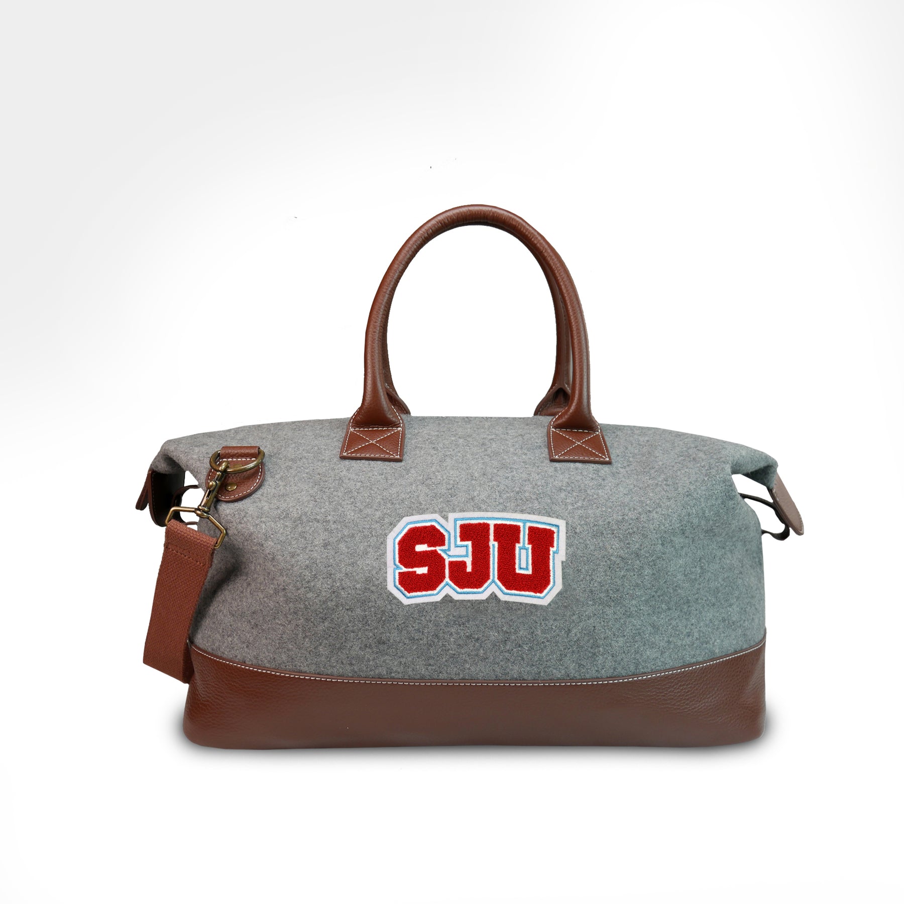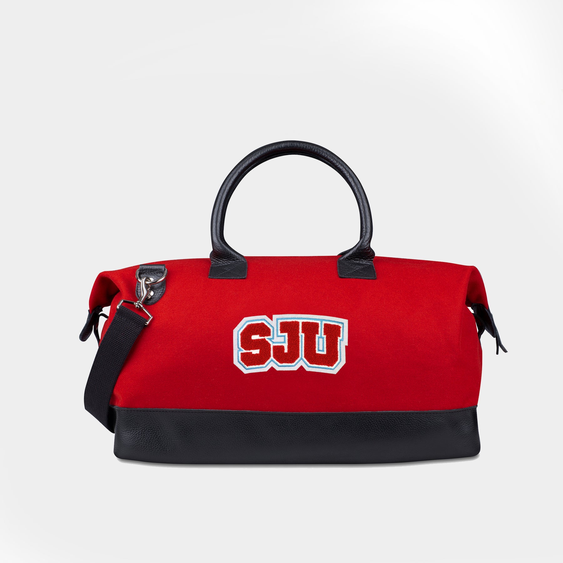 Gear built to show off your Saint John's mania with class crafted by Heritage Gear. The Saint John's Johnnies Weekender Bag is made of sustainable premium wool and features the legendary chenille "SJU" patch handsewn to the bag. This timeless piece helps commemorate and celebrate your life and passion for your college . Crafted to last a lifetime, the Saint John's Weekender has full grain leather, double lock stitching with solid zippers and metals. It’s perfect for travel, spontaneous adventures, or as a gift for the ultimate Johnnies fan in your life. This bag also features a zippered interior pocket, twill cotton lining throughout, and only gets better with time.