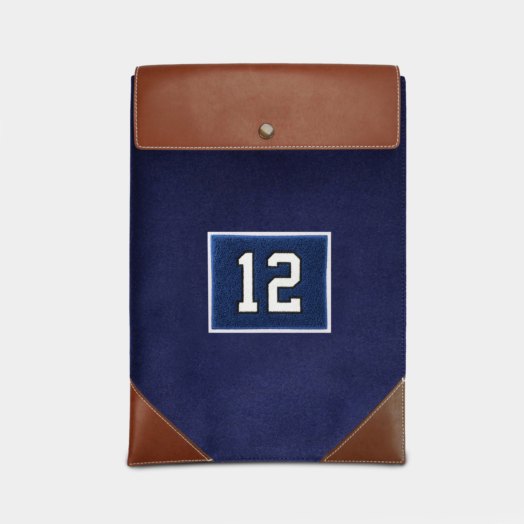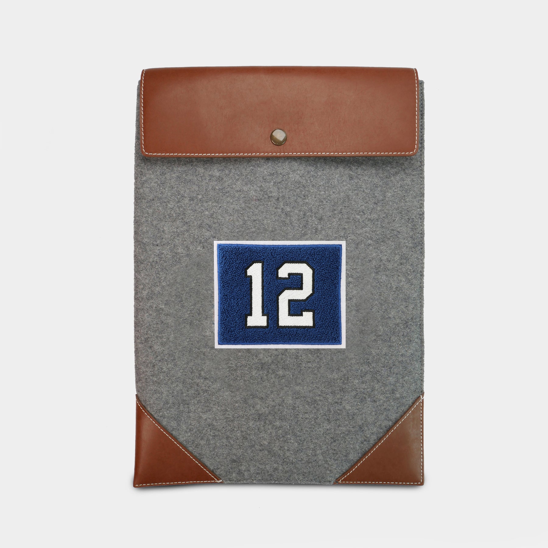 Brand new from Heritage Gear, our beautiful melton wool and leather trim Laptop & Documents Holder can serve either purpose depending on your need. Made of sustainable wool harvested with integrity and saddle leather trim on both the flap and corners, this piece is as sturdy as it is beautiful. The leather flap has a brass snap closure and is padded and lined in a sturdy color coordinated cotton twill to protect your laptop or any items inside. And with the Seattle Seahawks classic chenille patch hand sewn to the cover, you can display your Seahawks pride with class. Sized to fit any laptop and to fit comfortably inside a backpack, duffel bag or piece of luggage, the Laptop & Document Holder from Heritage Gear will go wherever you go in style and will likely last you through multiple laptop purchases.