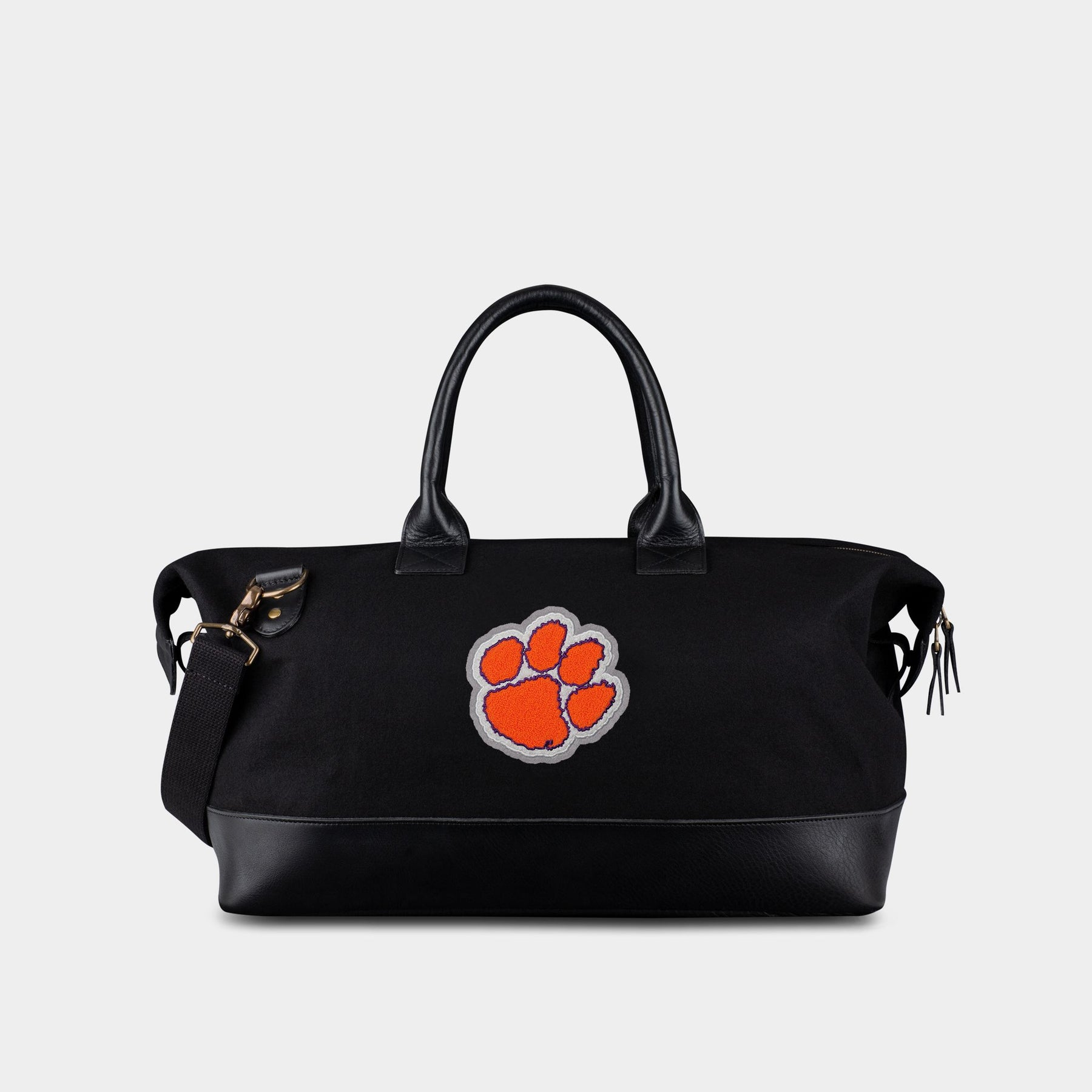 Gear built to show off your true “Hold that Tiger” pride with class crafted by Heritage Gear. The Clemson University Heather Grey Weekender Duffle Bag is made of sustainable melton wool from one of the oldest mills in the USA and features a classic chenille Tiger Paw silhouette patch in Orange with White felt lining handsewn to the bag. This timeless duffle bag helps commemorate and celebrate your life and passion for the university. Crafted to last a lifetime, the Clemson Tiger Weekender has full-grain leather, double lock stitching with solid zippers and metals. It’s perfect for travel, spontaneous adventures, or as a gift for the ultimate Tiger in your life. This bag also features a zippered interior pocket, twill cotton lining throughout, and only gets better with time.